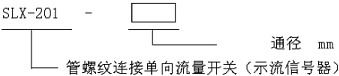SLX-201型單向機(jī)械式示流信號(hào)器用于測量流經(jīng)管道的液體流動(dòng)狀態(tài), 如:水、油、乙稀、乙二醇等對銅無腐蝕作用的液體。是一種新型的檢測裝置,廣泛用于水電站供水系統(tǒng)斷水保護(hù)。采用日本歐姆龍微動(dòng)開關(guān),動(dòng)作輕巧。 二、型號(hào)說明