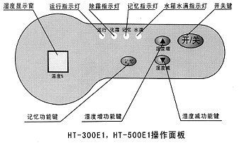 2) 按一下“開(kāi)/關(guān)"鍵,運(yùn)行指示燈亮,濕度顯示窗閃亮,顯示前次操作設(shè)定濕度,初始設(shè)定濕度為6O%,三秒鐘后濕度顯示窗常亮,并顯示當(dāng)前濕度。