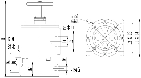NZL型手動(dòng)濾水器的清污、排污過程不影響正常積水。正常過濾狀態(tài)時(shí),排污閥關(guān)閉。當(dāng)需要清污、排污時(shí),排污閥打開,濾水器開啟,進(jìn)出水管口與被沖洗的濾網(wǎng)單元相連通,附在濾網(wǎng)上的污物借助濾水器內(nèi)部的部分過濾后的清潔水反沖,經(jīng)排污閥流出,排入集水井。